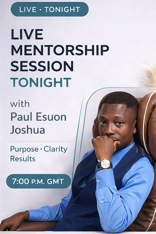 There is one-on-one mentorship by founder, Paul Esuon Joshua, for persons involved in the work of ministry, leaders or youth in order to navigate challenges, effectively use gifts and talents and be pleasing to God.